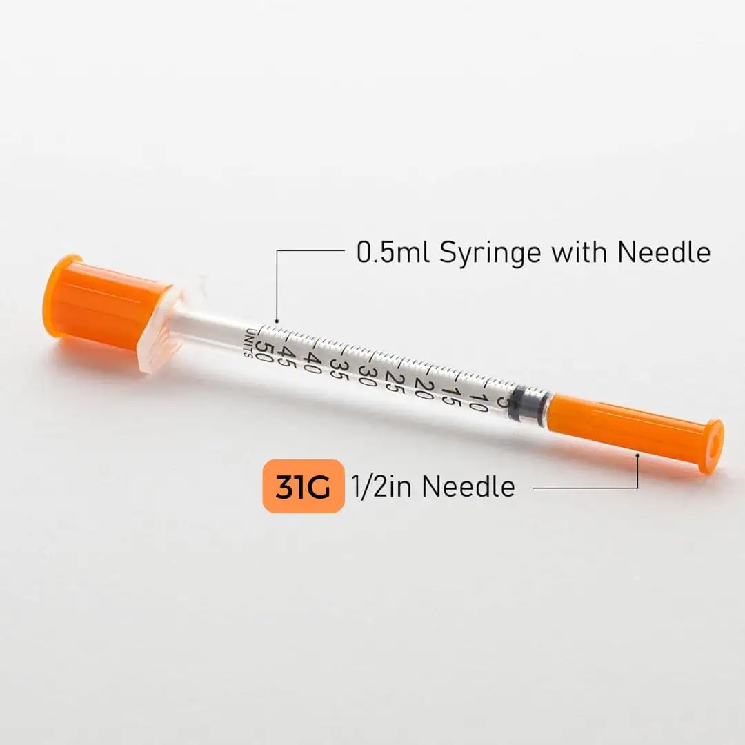 Set of 10 sterile 0.5ml insulin syringes, each individually sealed for safe, single use. Designed with fine-gauge needles for minimal discomfort and clear markings for accurate dosing. Ideal for insulin, botulinum toxin, or other injectable treatments under professional supervision.